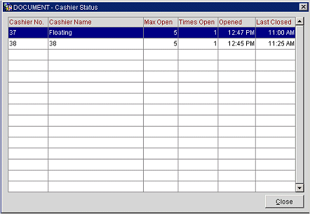 Max Open. Number of times users can close and re-open this cashier ID in one business day. This value is set during Cashier setup.