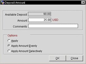 When the Cashiering>Credit Card Transaction Surcharge application parameter is set to Y, and a surcharge applies to the credit card payment method selected for the deposit payment, the upper grid (Deposit Requested) values will not reflect the surcharge amount. The surcharge will be included in the Deposit Screen lower grid payment Amount.
