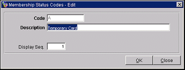 Description. A short description of the membership status code. This description displays when searching for codes in the Membership Status Codes list of values.