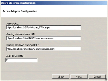 Refer to the following image and the table below for information on entering Acres Adaptor configuration parameters.