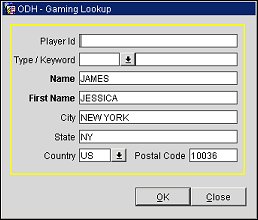Lookup can also be invoked by a card swipe or through entering the player ID from selected areas within OPERA.