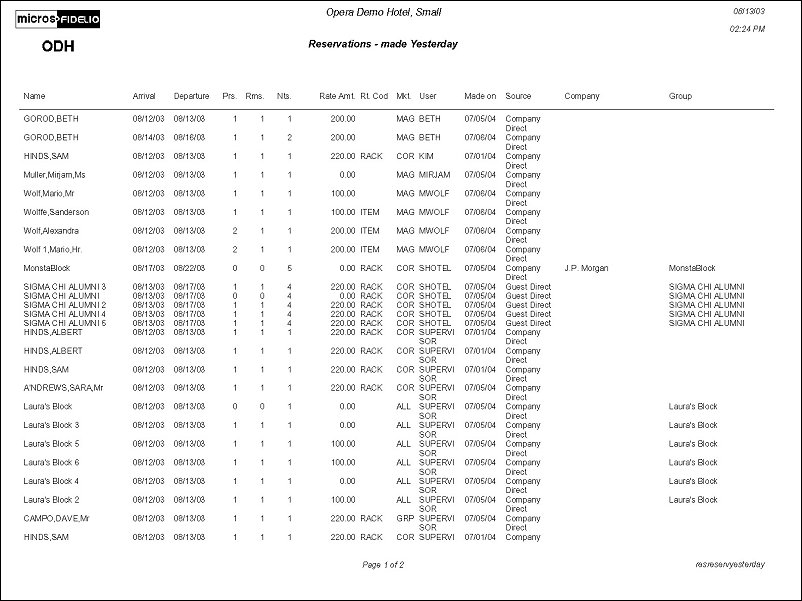The Reservations Made Yesterday Report displays the hotel reservation production from the previous day.