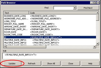 Or, you can also view and/or edit the condition of an IF/ENDIF statement via the Field Browser (Tools > Field Browser) then selecting the Update button to apply your modifications.