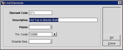 To create new or edit existing unit elements, select the New or Edit buttons from the Unit Elements screen. A screen similar to the following image appears:
