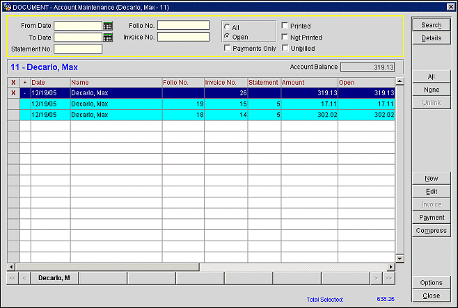 Note: You cannot compress invoices that include postings for the current business date. You also cannot compress invoices that have been paid, either partially or in full.