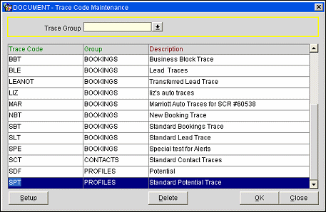 Trace Code. Enter the code which is associated with the trace. These codes are user definable. These are the choices you see when in the application.